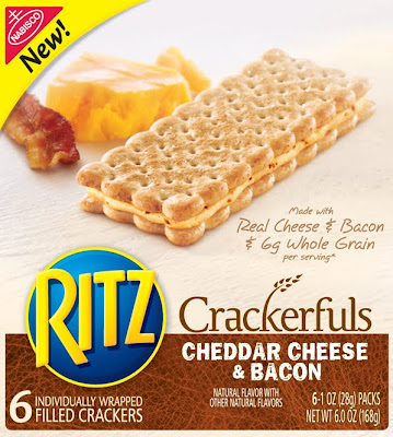 Ritz Crackerfuls are individually wrapped cheese and cracker sandwiches made with whole grains and real cheese. They come in four varieties: Garlic Herb, Four Cheese, Classic Cheddar and Cheddar Cheese & Bacon.